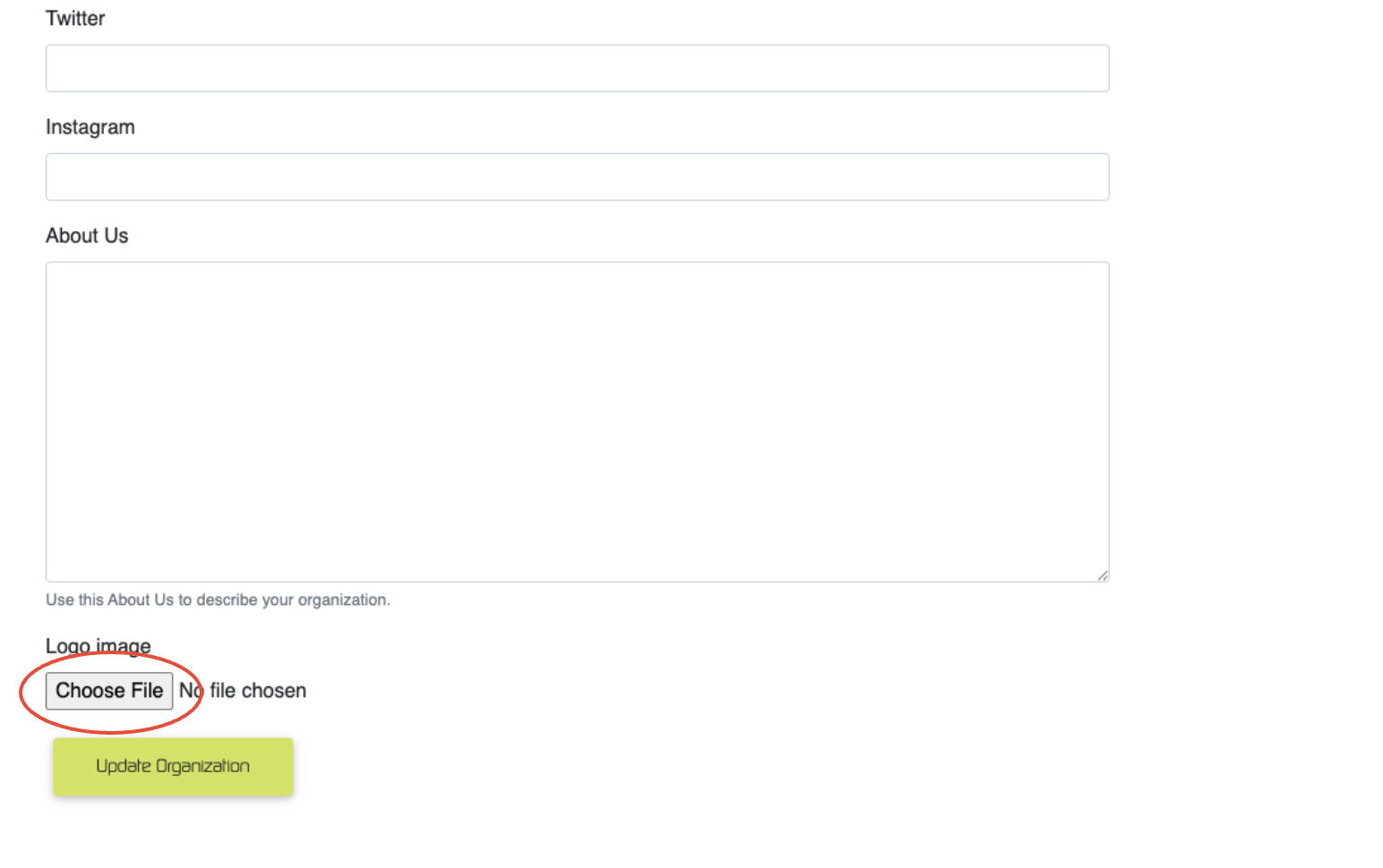 At the bottom of the 'Edit Profile' menu item, you can add or update the logo for your organization that will be shared with all your players as your invitations are sent out. To add a logo just click 'choose file' and choose an image stored on your device.