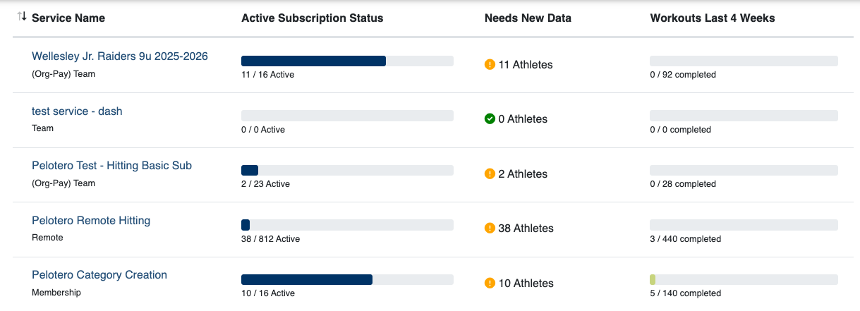 Separating your services will allow you to keep your groupings of players smaller and give you visibility and insight across each of these smaller groups. Building programs will be much easier when separating players by services, as this will allow for entire groups to be selected upon program creation.