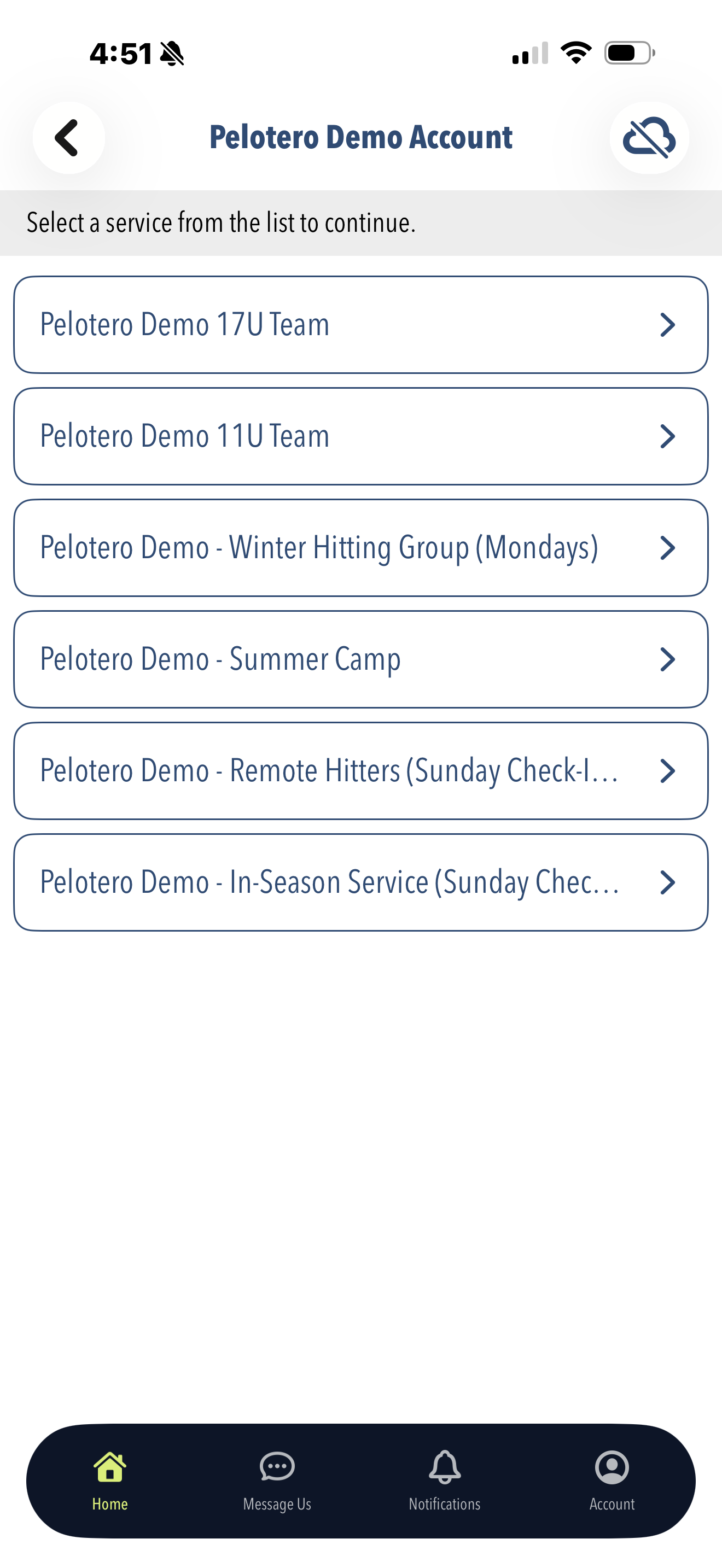 Once players have been added to the platform, video collection is as simple as opening up the Pelotero app, logging in with your coach credentials and choosing the Service that you'll be collecting data for.