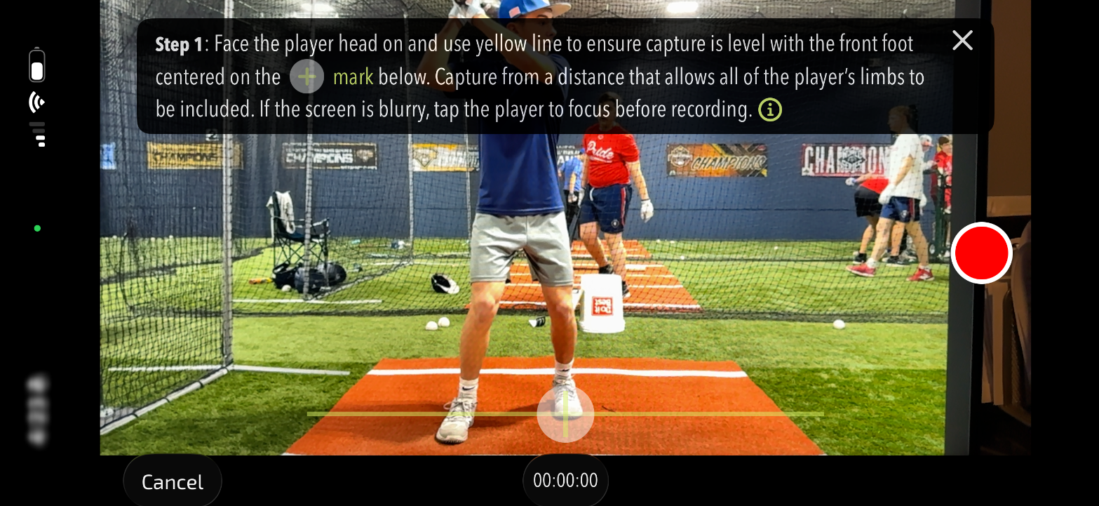 Once the device is rotated you will see another notification telling you how to align the player on the screen. The notification will inform you to line up the player's feet with the yellow line at the bottom of the screen and to use the cross in the middle to align to their front foot.