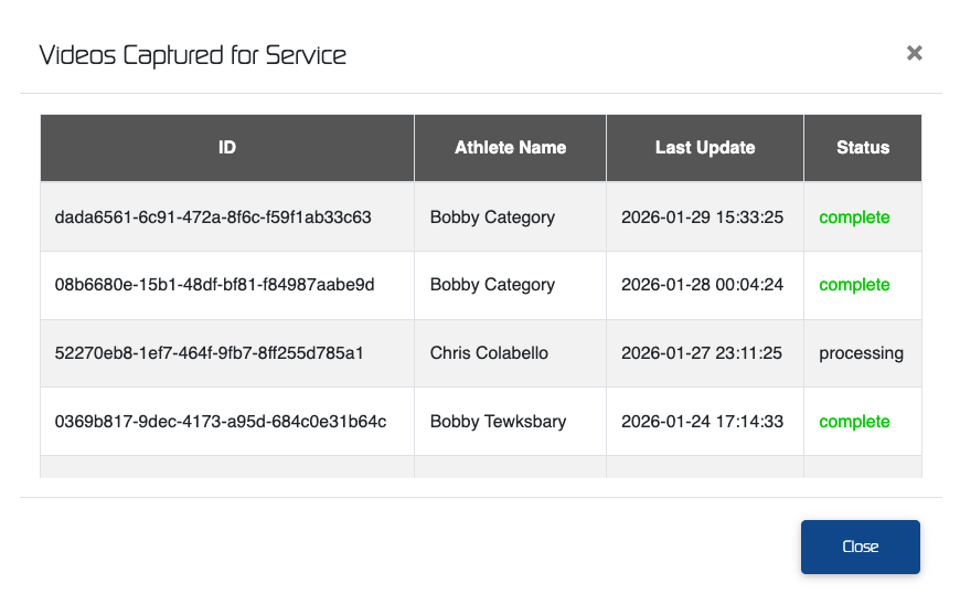 - Pending - an athlete's video is awaiting account activation before processing.