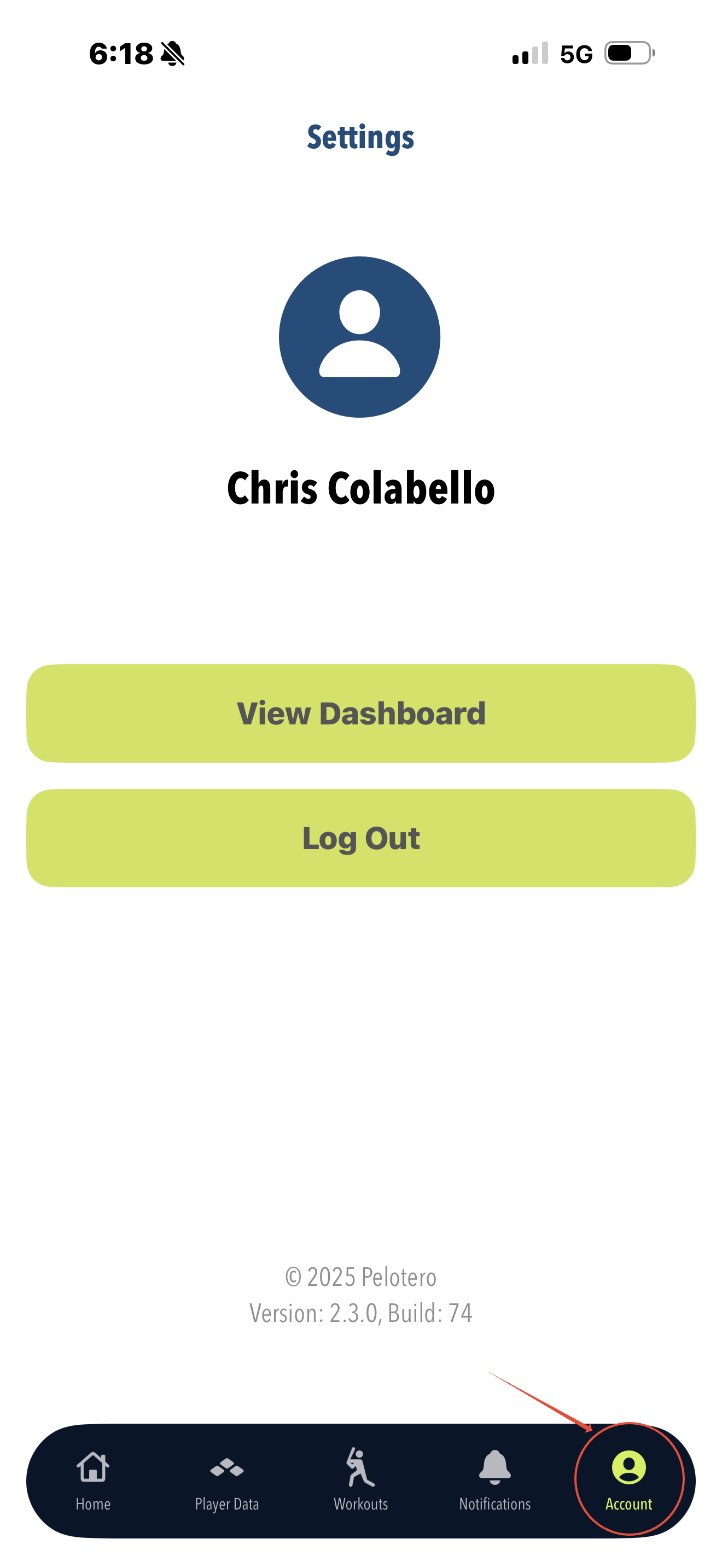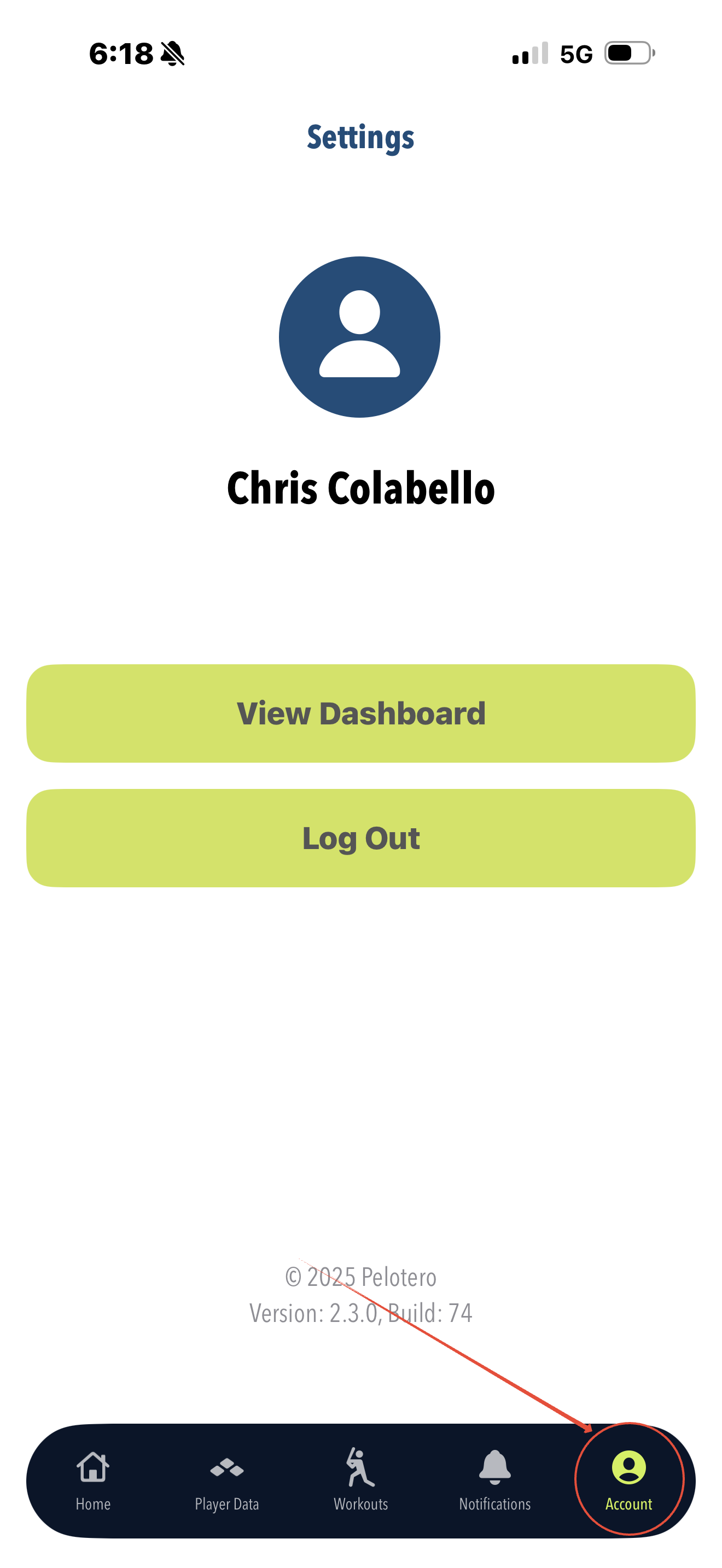 Once a player has downloaded the Pelotero app, and reset their password after receiving an invitation, this is what the player will see.