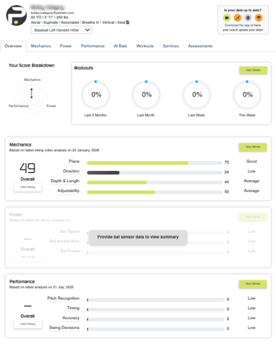 - Mechanics - Review their uploaded swings and see their breakdown