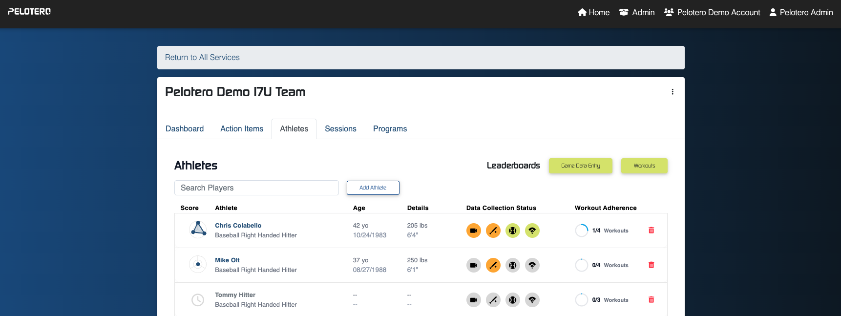 This will bring up your roster, displaying names, ages, and data collection statuses.