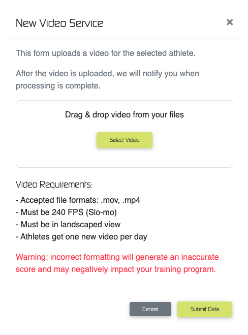 ***To ensure video will be processed properly, please use 240 frame per second video, recorded on open side of hitter, with nothing between the camera and the hitter.