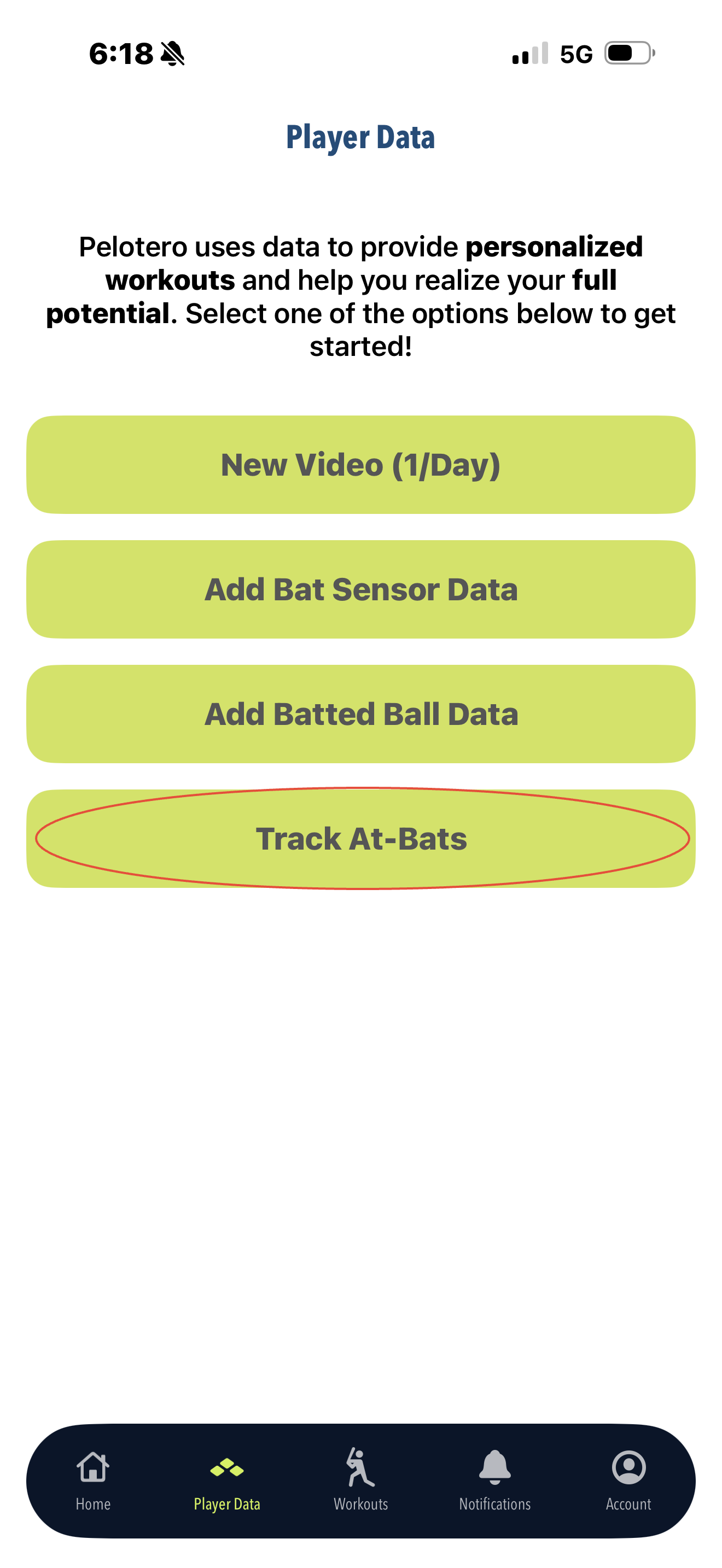Open the Pelotero app and tap the Track At Bats button on your main dashboard.