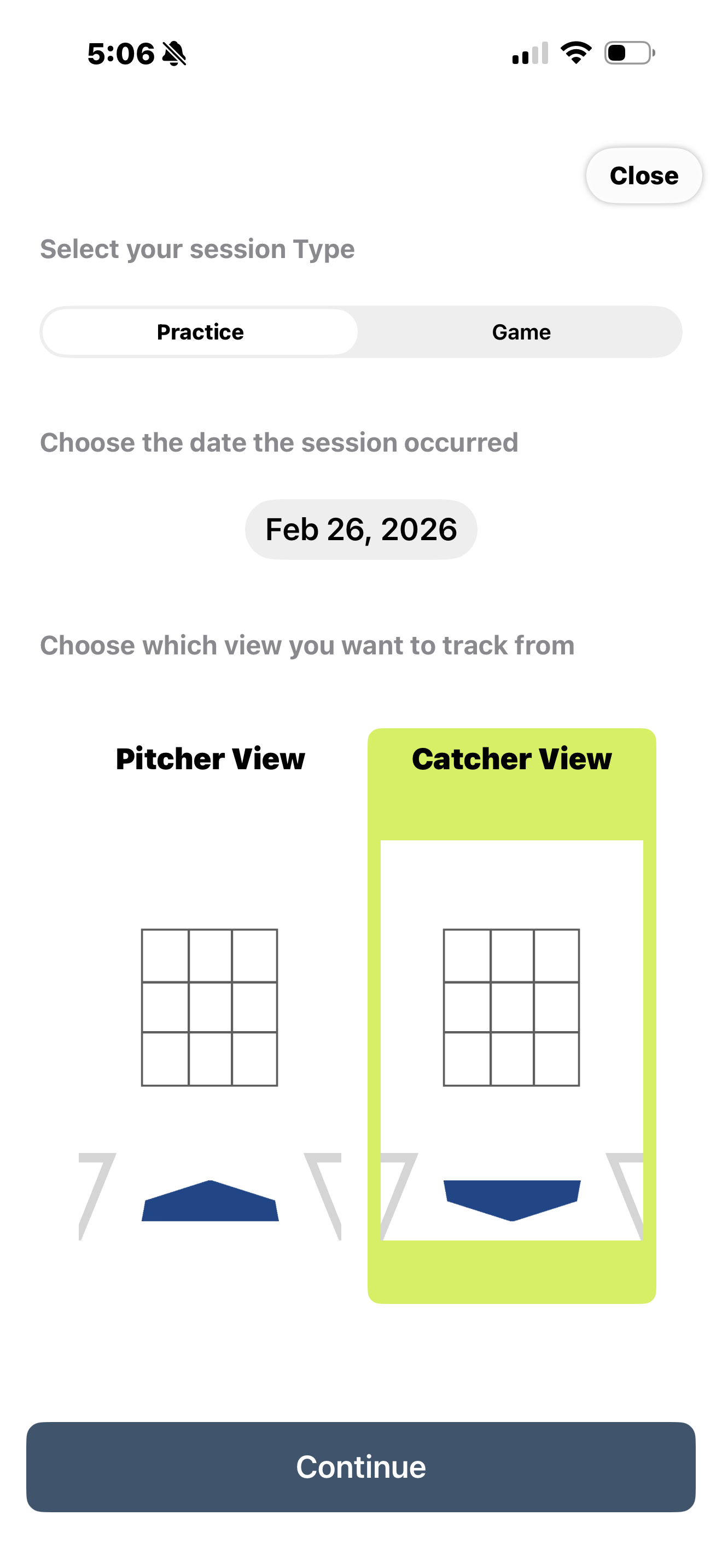 Enter your Opponent's Name and select your preferred Camera View (Pitcher or Catcher).