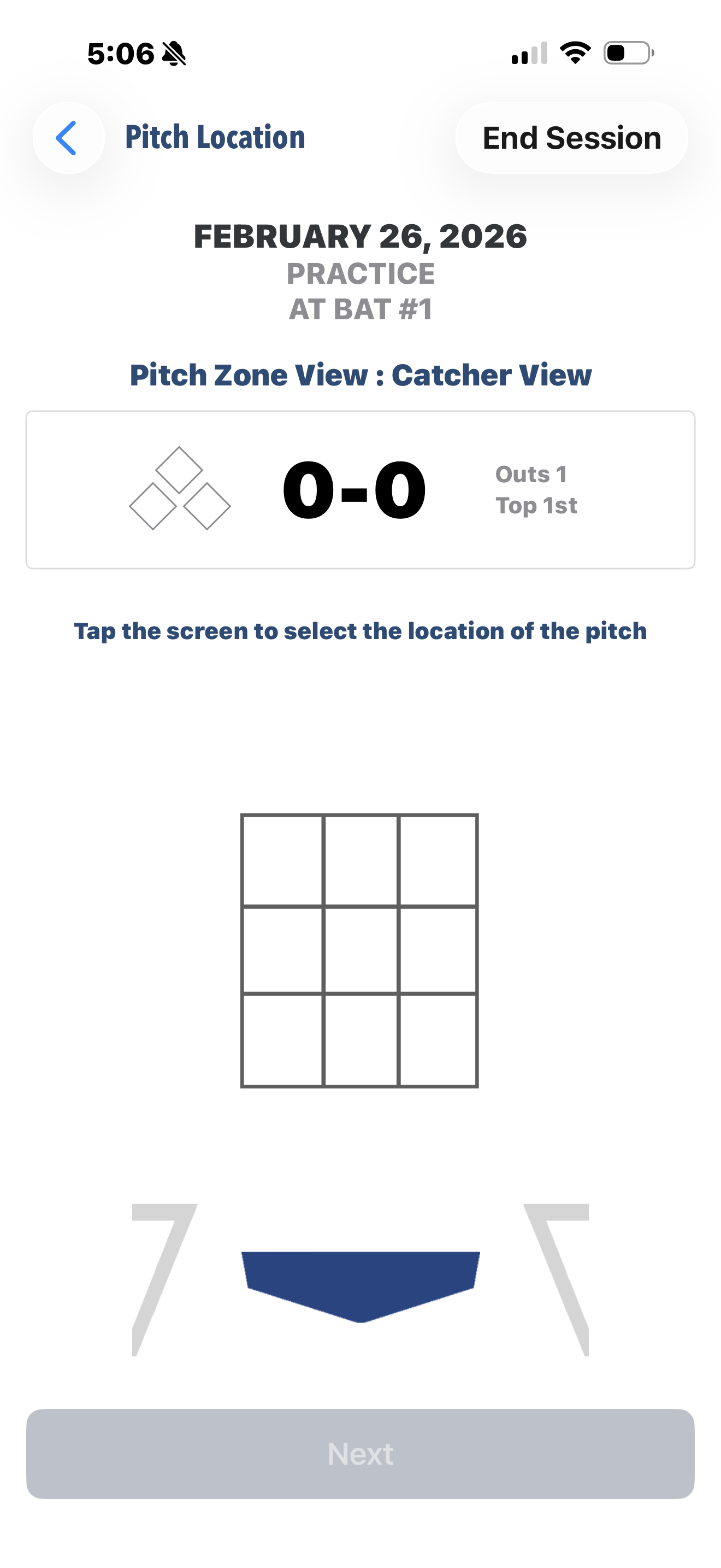 Location: Tap the strike zone grid to mark exactly where the pitch crossed the plate.