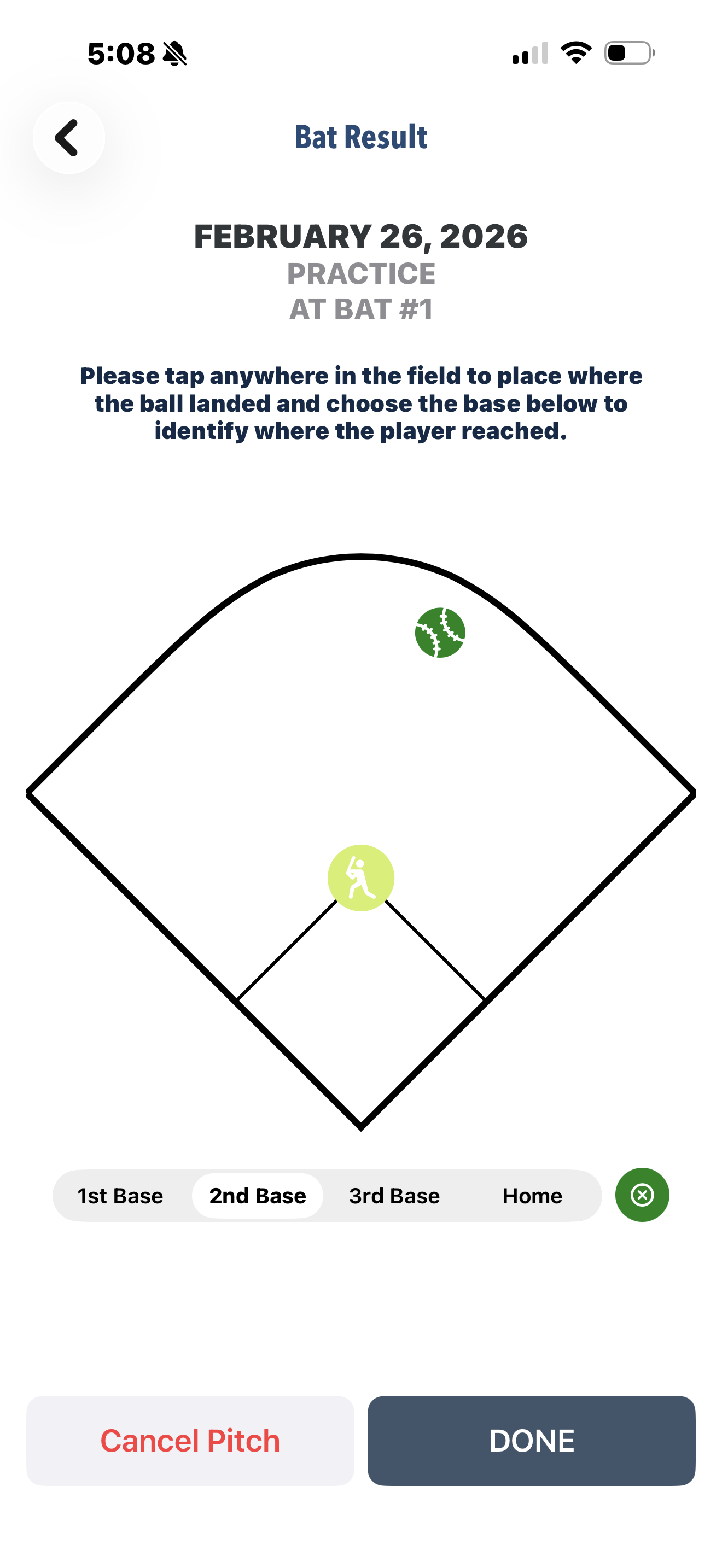 On the final diamond screen, tap where the ball landed and which base you reached.