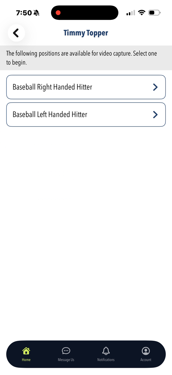 Figure M5: Position select — choose batting hand/position before video capture