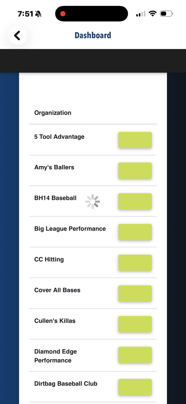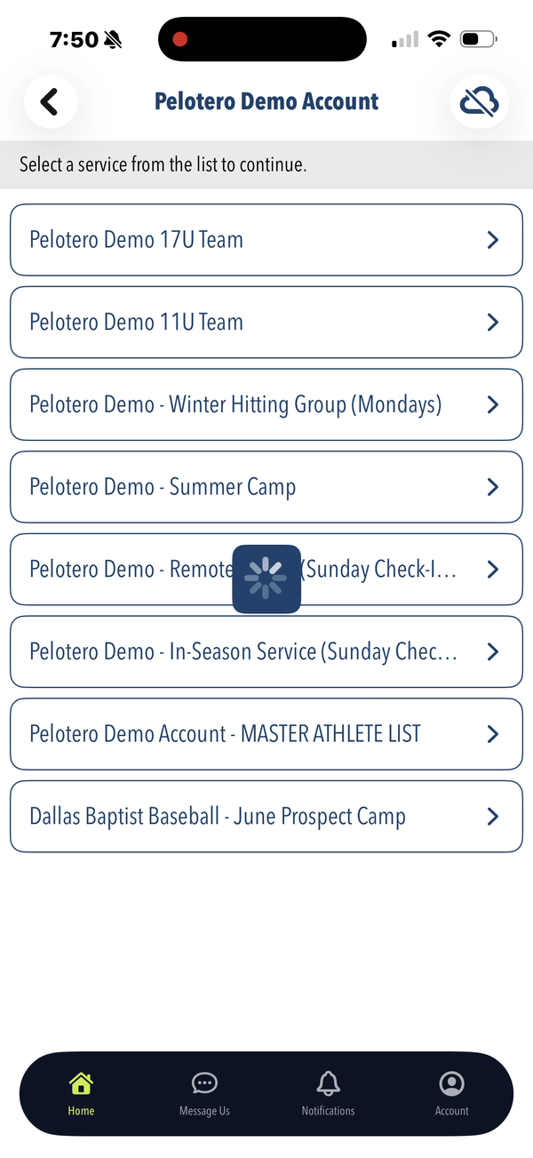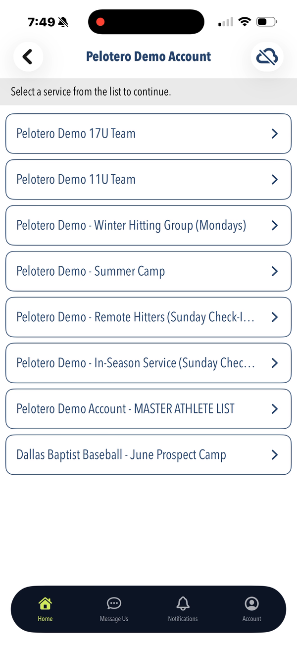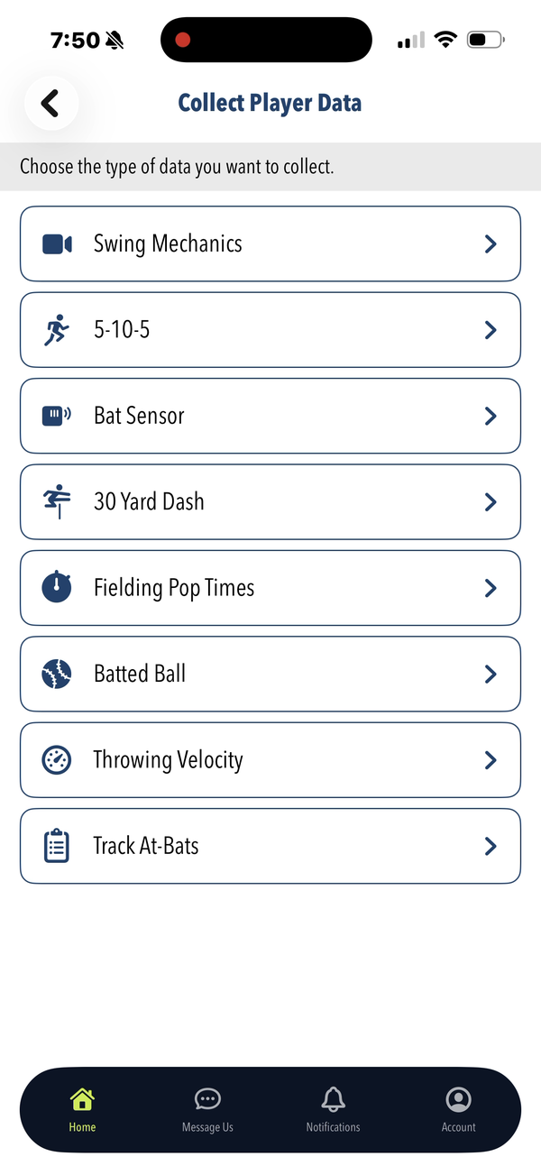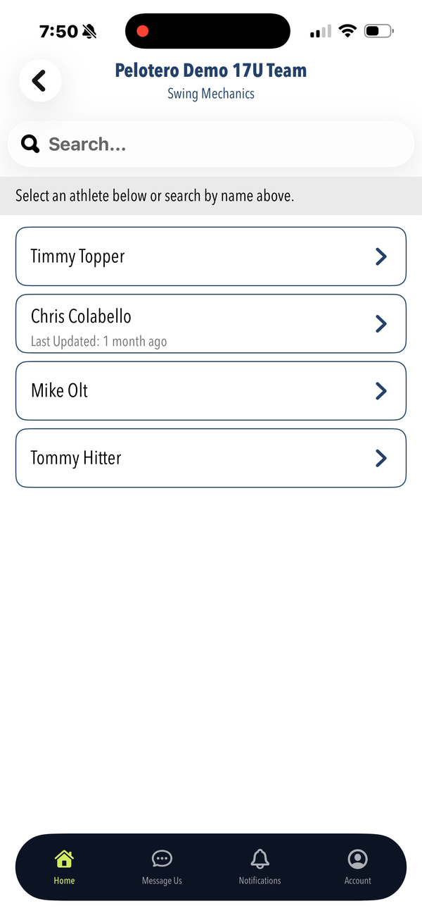Pelotero has a companion iOS app that coaches use to collect data in the field — primarily swing video and bat sensor readings. Athletes also use the app to complete workouts and track their progress. The mobile experience is designed around data capture and quick access to the same Player Intelligence scores available on the web.