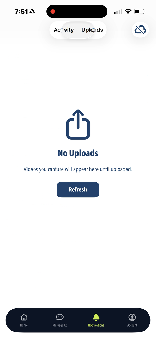 Figure M8: Activity & Uploads tabs — recent events feed and video upload status